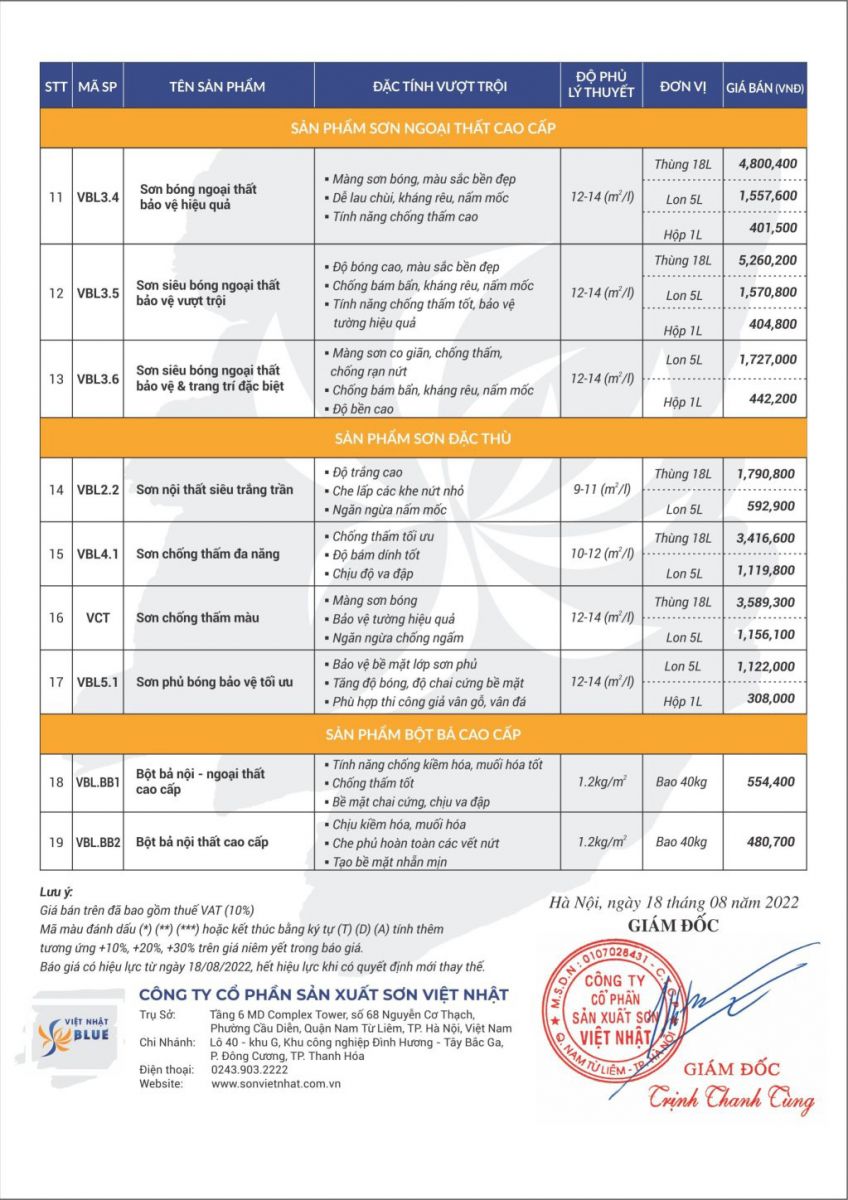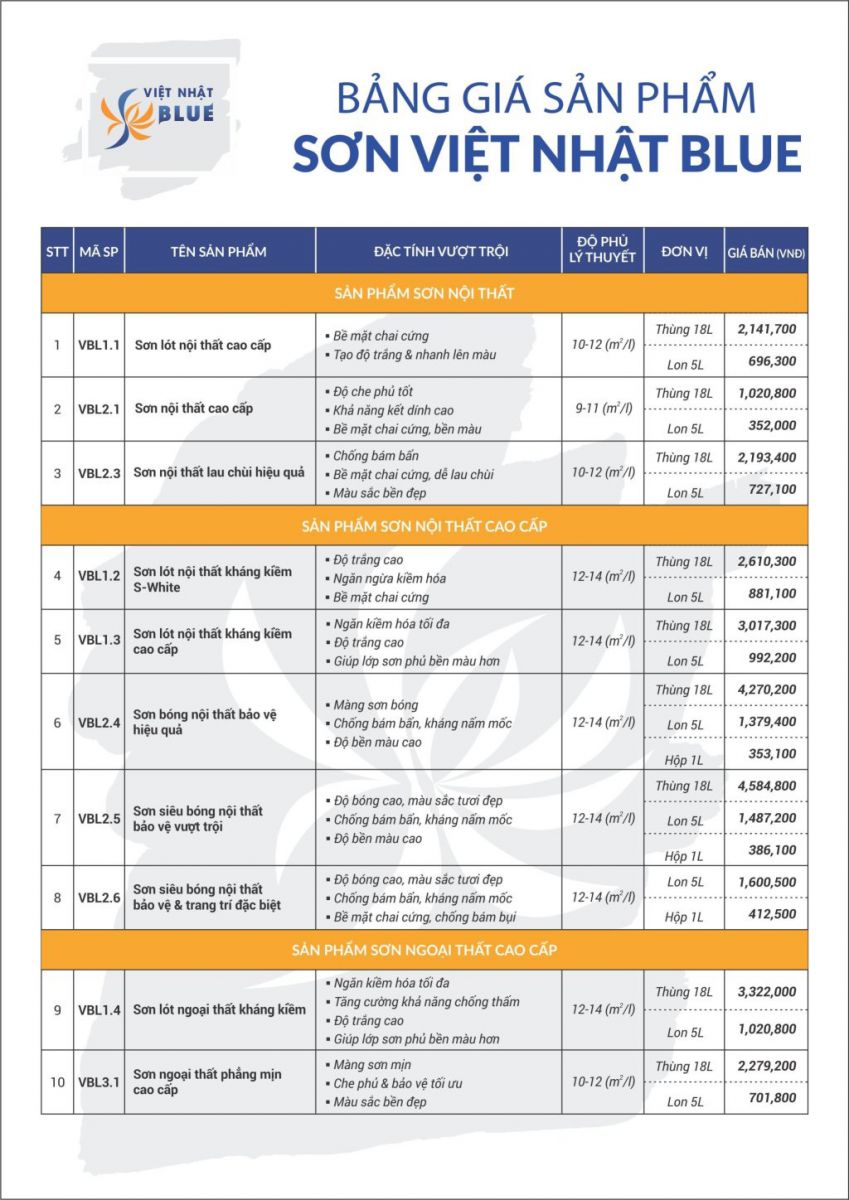 Bảng giá sơn Việt Nhật Blue